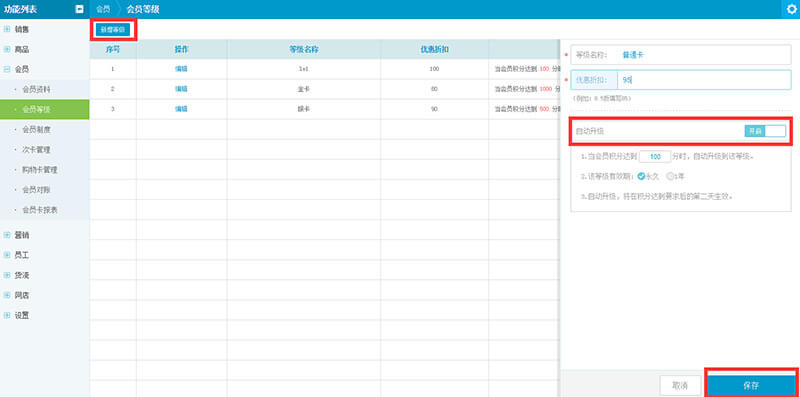 ,即满一定额度积分可自动升至更高等级,有效期可选一年或永久。