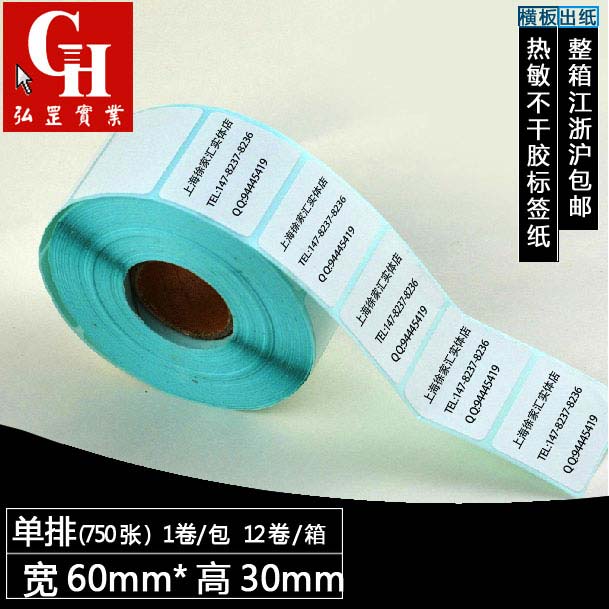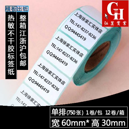 【规格】60MM-30MM 每卷750张 单排热敏标签打印纸