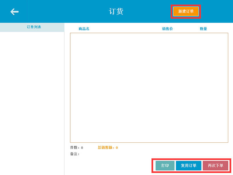 新建订单的操作十分简单,只需要和收银时一样,将需订货的商品添加到左侧清单即可。